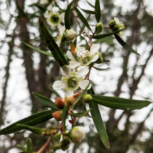 2020年、南半球の夏も本番に入り、1月に入ってようやくレモンティーツリーの花(画像)が咲き始めました。今シーズンは半年近い干ばつ。ほとんど雨が降らず大地はカラカラ。12月後半からようやく雨が少し降り始めたことでいろいろな植物が一斉に花をつけ始めました。このレモンティーツリーの花も同じで、例年なら11月頃に咲いている花。雨を得て2ヶ月近く遅れての開花です。